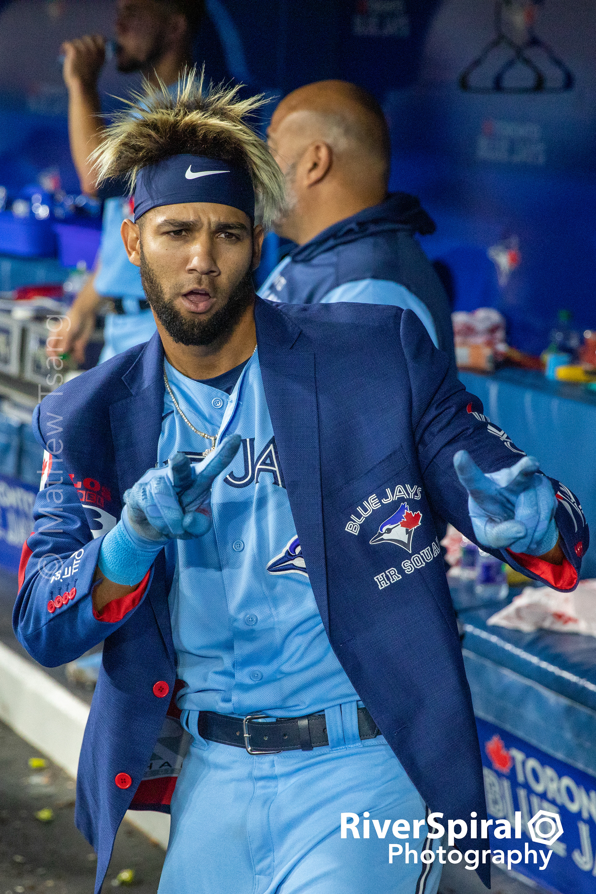 Teoscar Hernandez (37) returns to the dugout for his Blue Jacket.