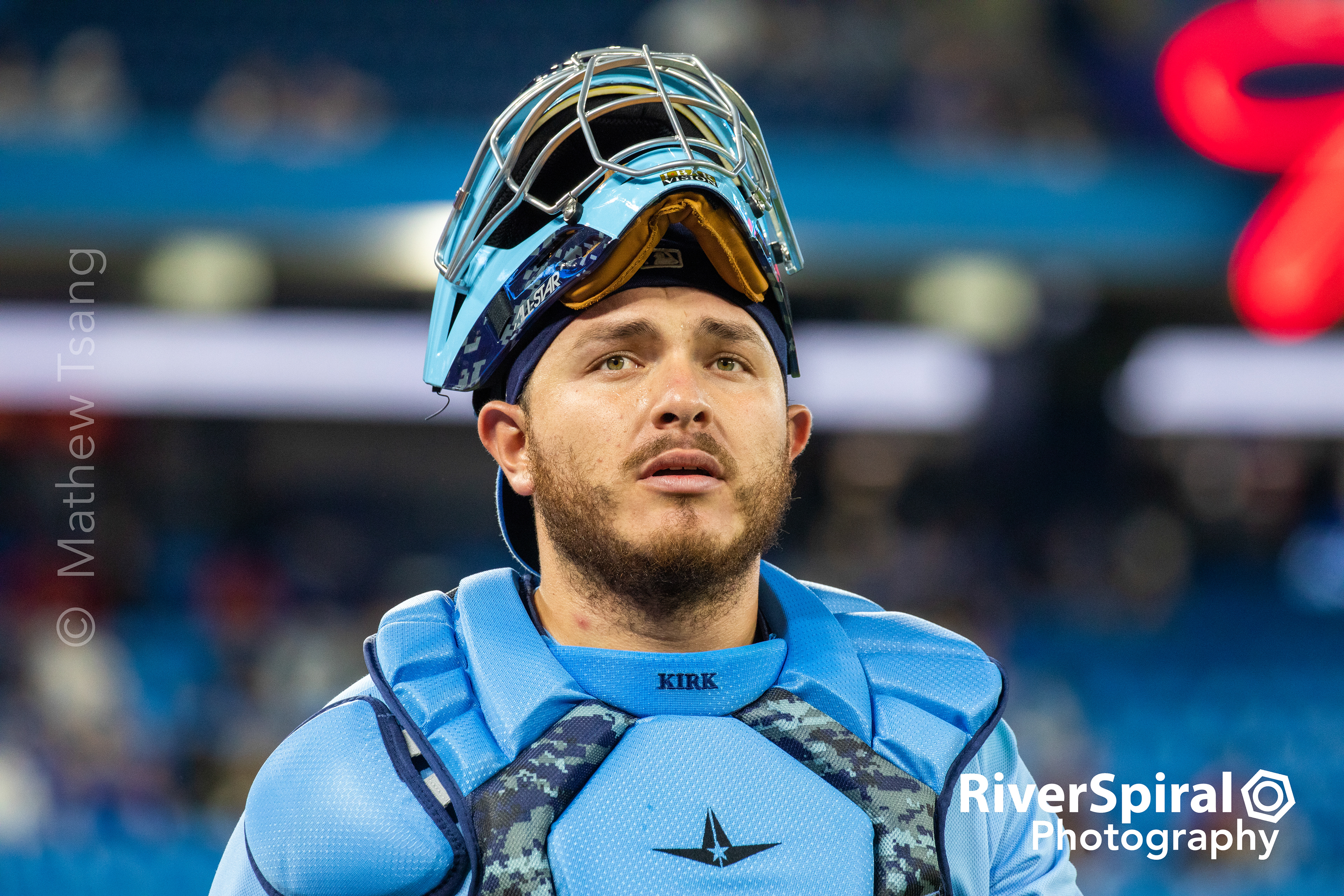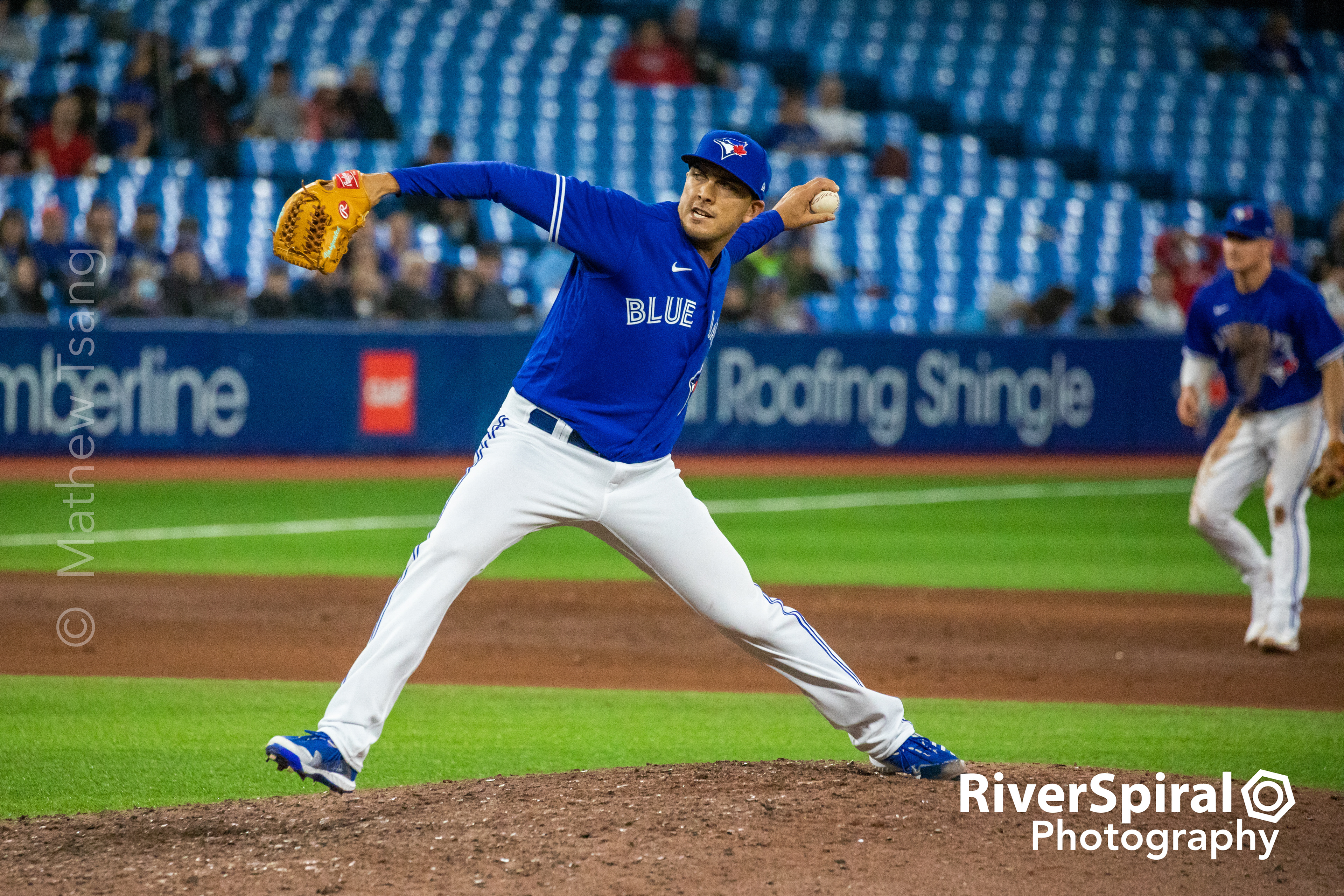 The Blue Jays take the field in the top of the inning.